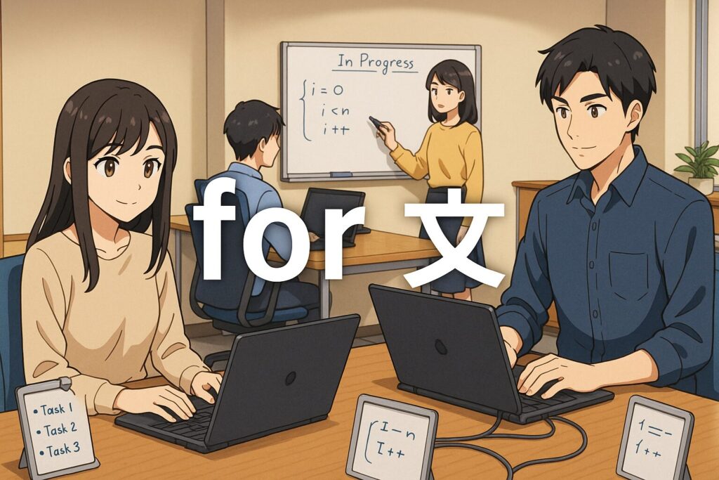 for文は、指定した回数だけ決まった処理を繰り返す場合に最適です。