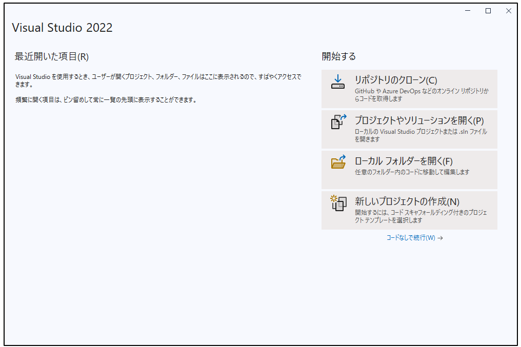 Visual Studio 2022は、初期状態ではC言語開発用のコンパイラが含まれていません。
