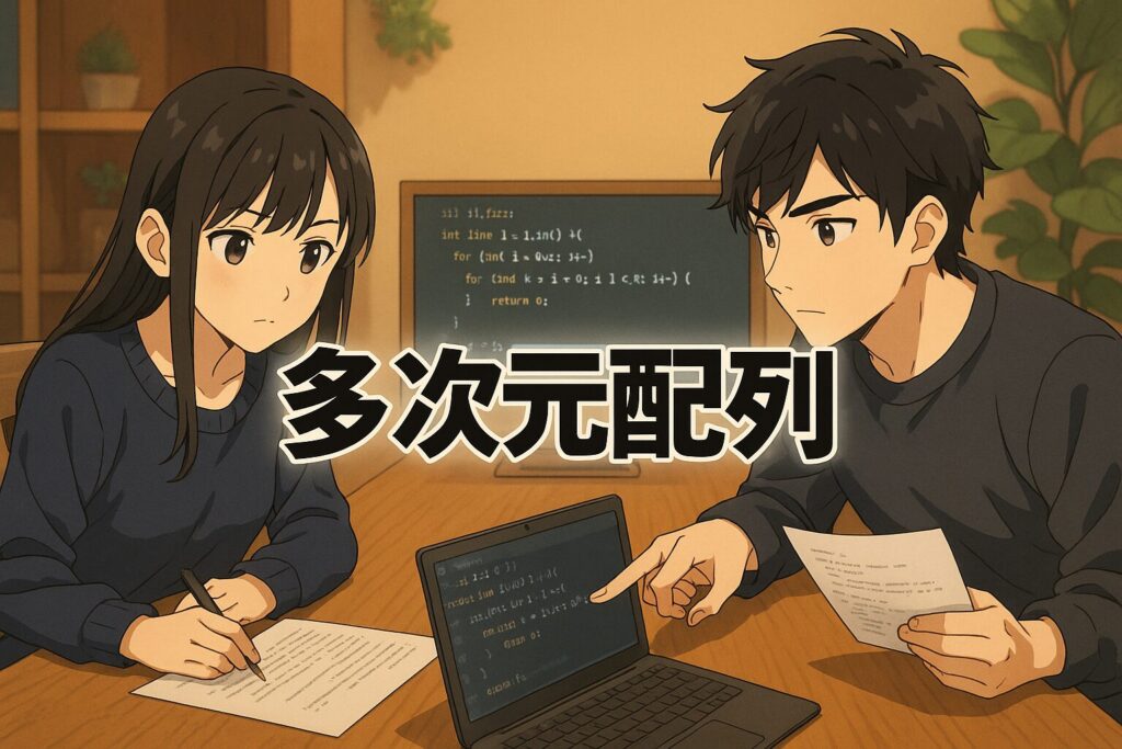 C言語で多くのデータを扱う場合、1次元配列だけでなく、多次元配列を利用することで複雑なデータの管理や処理が簡単にできます。多次元配列は、2次元配列や3次元配列など、複数の「添え字(インデックス)」を使ってデータを整理できる構造です。表や行列、座標データ、成績表など、縦横(行・列)の形でデータを管理したいときに活躍します。