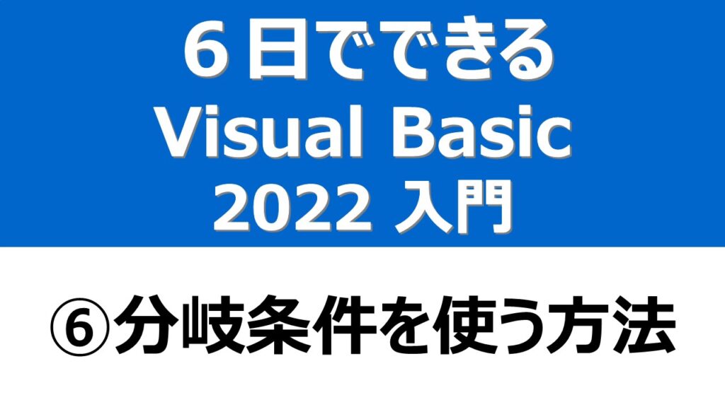 【6日でできるVisual Basic2022入門】⑥分岐条件を使う方法