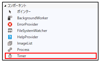 Timer コンポーネント非表示コントロール画面には描画されずコンポーネントトレイに置かれる。