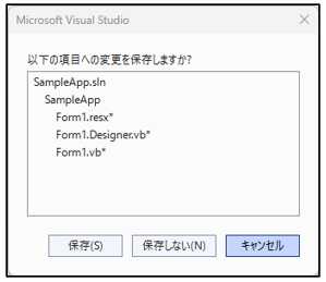 保存せずにVisual Studioを終了しようとすると、「変更の保存を確認するダイアログ」が自動表示されます。
