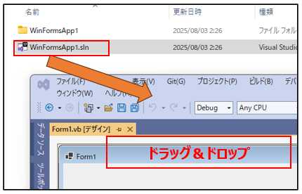 | ドラッグ&ドロップ | .slnファイルをVisual Studioの画面へドラッグして開くことも可能 |