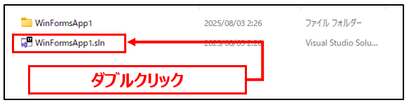 - 保存したソリューションファイル(.sln)はダブルクリックでも簡単に開ける。