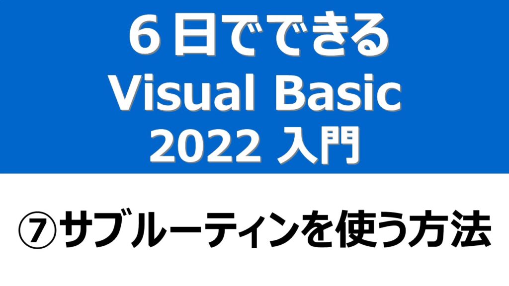 【6日でできるVisual Basic2022入門】⑦サブルーティンを使う方法