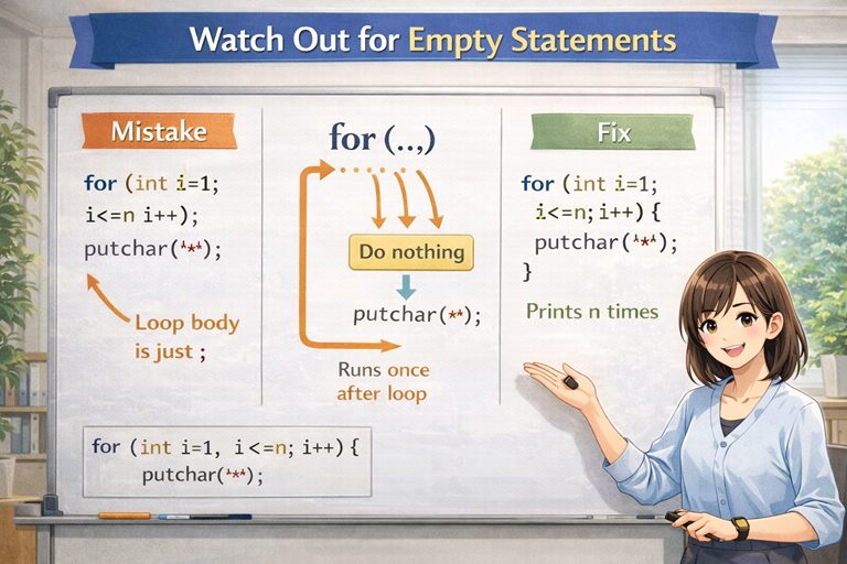 C言語基礎|空文に注意しよう
