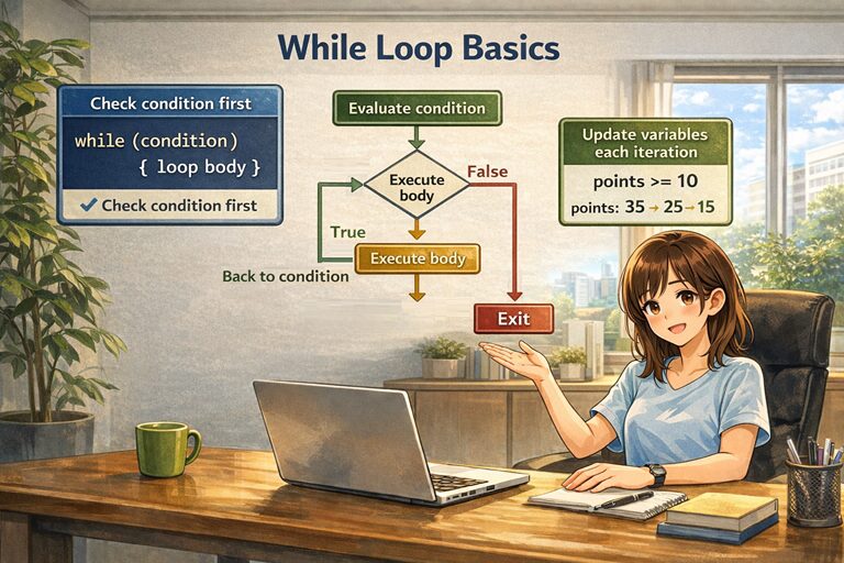 はじめに:while文は「条件を満たす間だけ繰り返す」門番タイプ