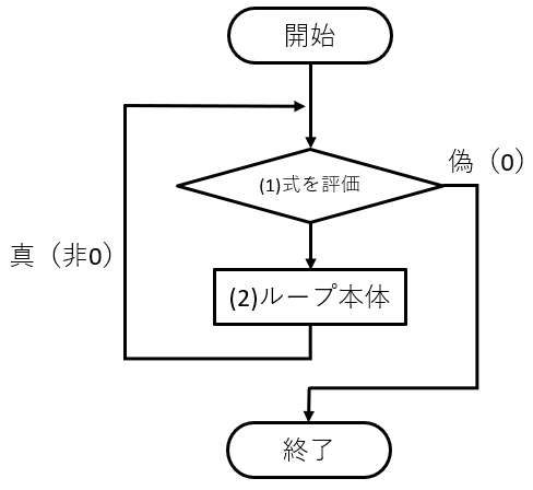 | 制御式 | (式) | 真(非0)なら繰り返す条件 |