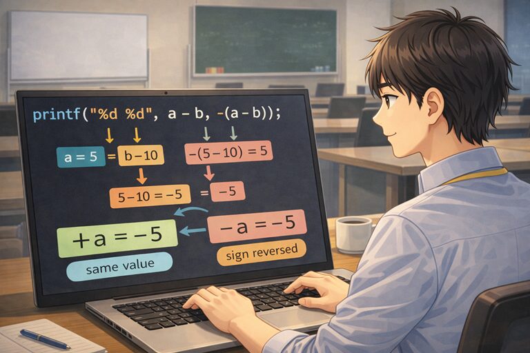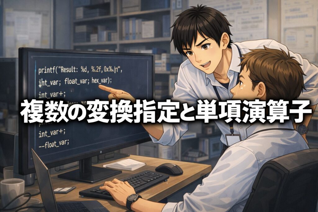 C言語基礎|複数の変換指定と単項演算子