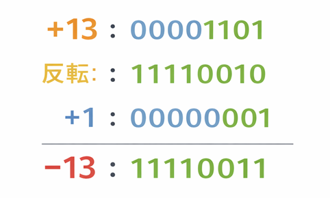 図:+13 → −13(2の補数)