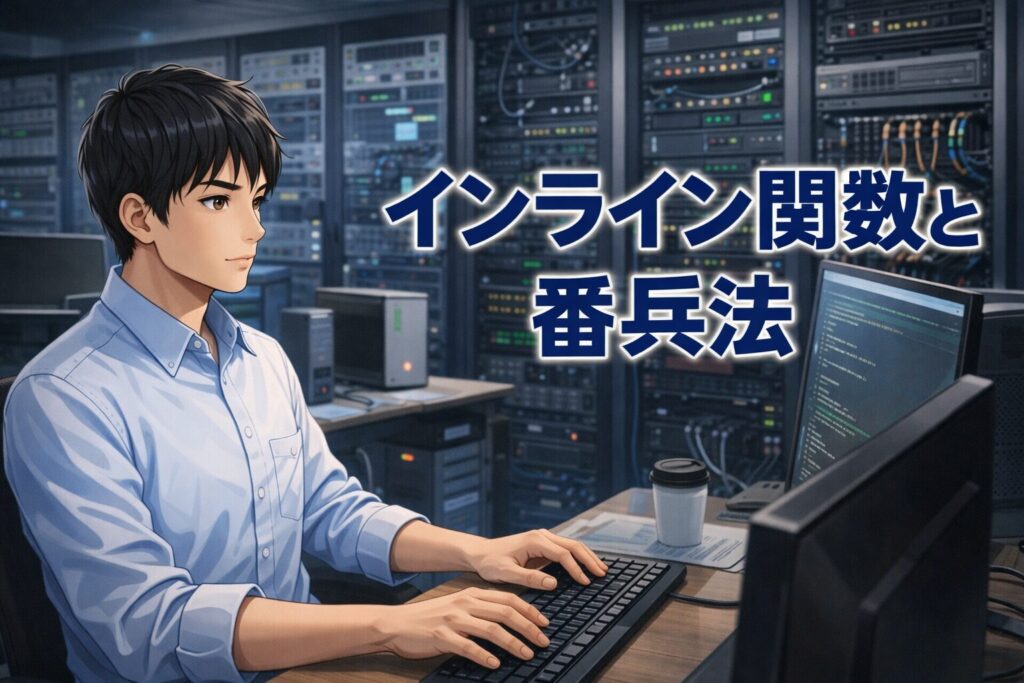インライン関数は、関数定義の前に inline を付けた関数です。コンパイラが「この関数は小さいし、呼び出すより展開したほうがよさそう」と判断すると、呼び出し箇所に関数本体を埋め込むことがあります。