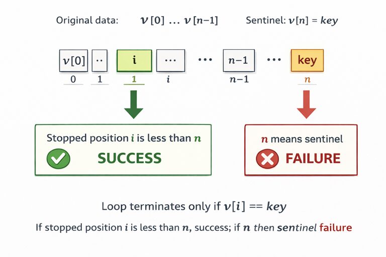 | 通常の線形探索 | 終端判定 + 一致判定 | 判定が2つになりやすい |