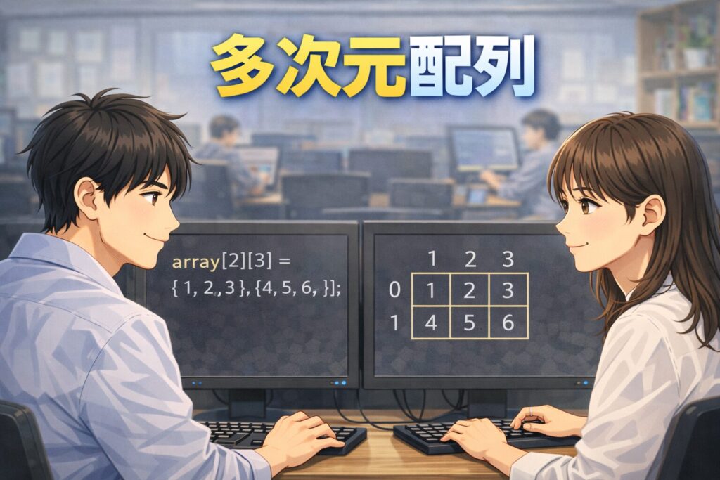 2次元配列は、行と列に役割を持たせると一気に読みやすくなります。