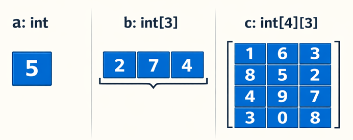 • 3次元配列:2次元配列がさらに積み重なる(ページ・回数・層)