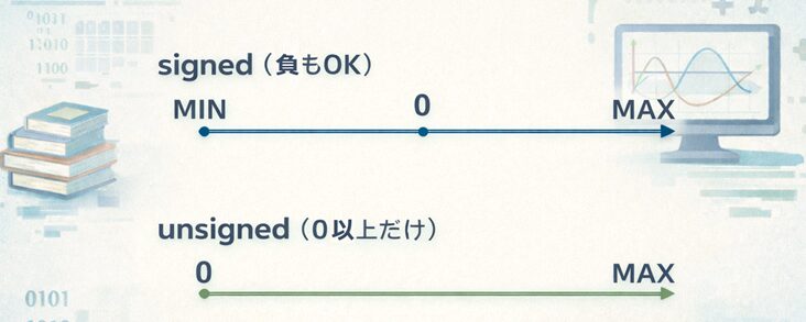 図:signed と unsigned の範囲イメージ(概念図)