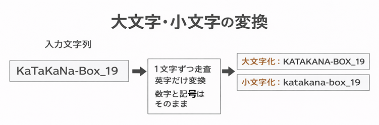 なので、数字や記号を壊さずに「英字だけ」を統一できます。