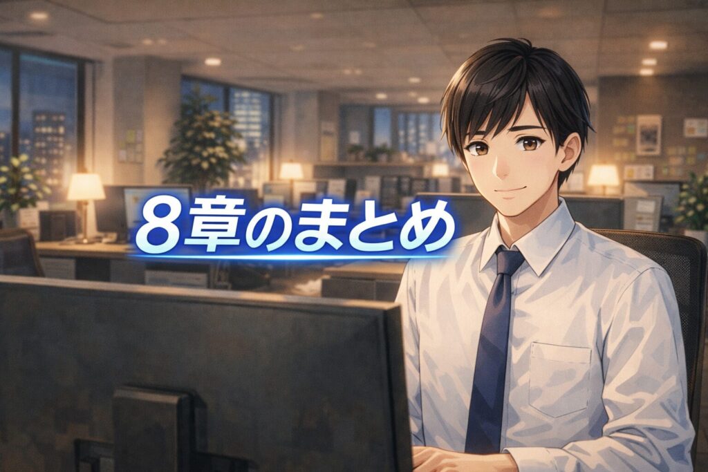 この1本で「第8章の要点が何度も出てくる」構成になっています。短いのに学びが濃いです。