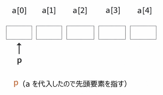 - p=a の図は「ポインタが先頭要素を指す」状態を矢印で視覚化したものです。