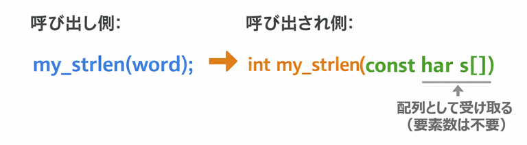文字列は配列なので、関数に渡すときは 配列名だけを渡します。