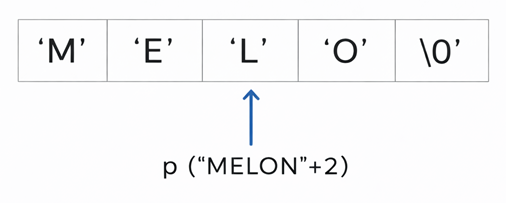 - "MELON" + 2 は、先頭から2文字進んだ 'L' を指す
