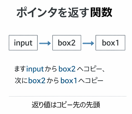 - 返すのは「コピー結果が入った場所の先頭」です。