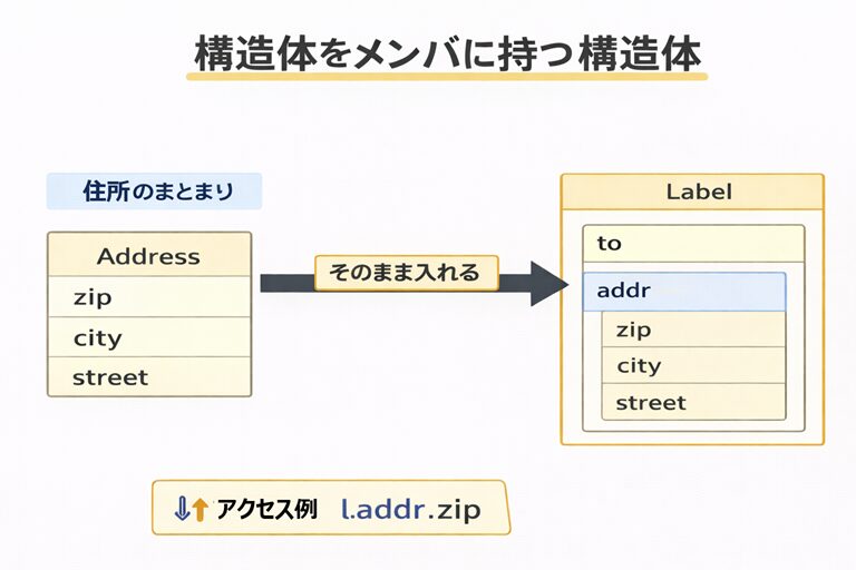 構造体に慣れてくると、次にやりたくなるのが「もっと現実っぽい形でデータを表したい」です。