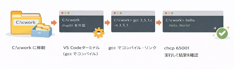 | 4 | 3_5_1.c を作成する | VS Code |