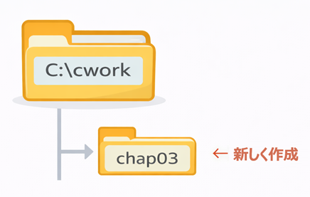 この操作で、C:\cwork の中に chap03 が作成されます。