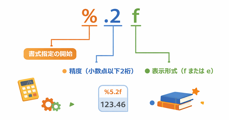 ここでは、%f と %e を中心に、浮動小数点数の表示と精度指定をやさしく丁寧に解説していきます。