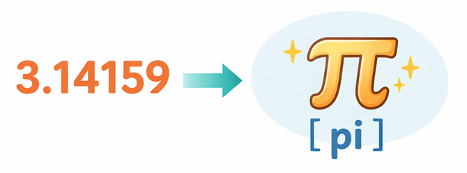 pi = 3.14159; // 値の代入この = は、数学の「等しい」とは少し意味が違います。