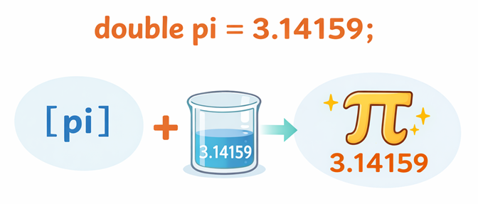 double pi = 3.14159;これは、宣言と代入を1行でまとめて書いているイメージです。