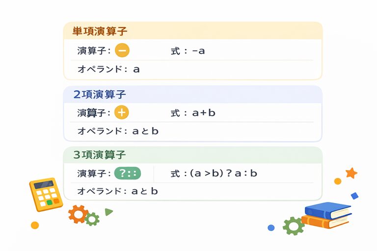 この節では、演算の土台になる 式・式文・演算子・オペランド を、やさしく丁寧に整理していきます。