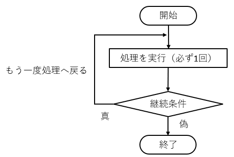 | do { ... } | まず1回実行する処理 | ここは必ず1回通る |