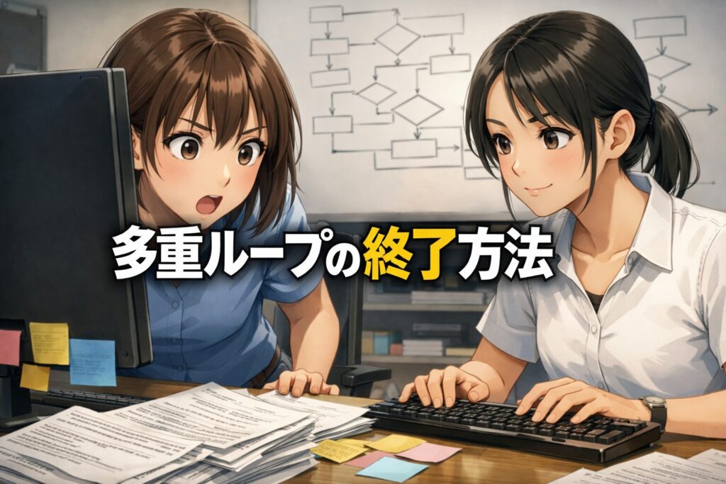 内側だけ抜けるのか、外側まで終わるのか。多重ループの終了方法を知ると、処理の流れがすっきり見えてきます