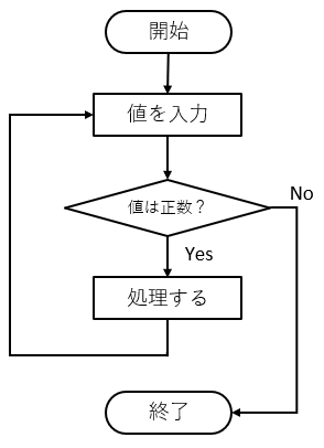 流れ図ではループ端記号を使う場合もありますが、初学者には判断記号で書く形のほうが分かりやすいことが多いです。