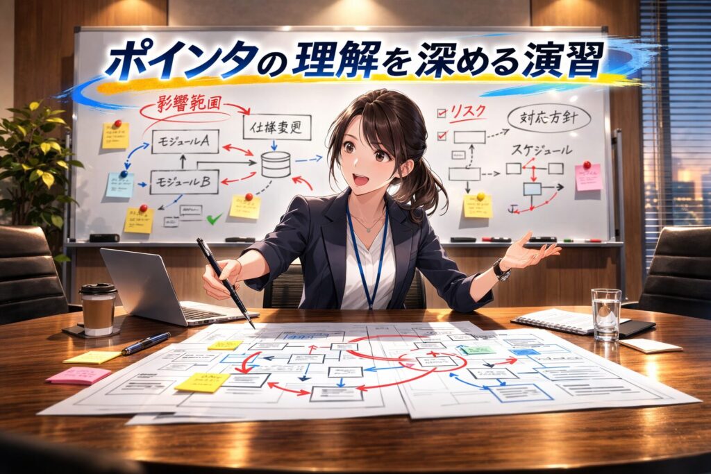 演習を通して、ポインタを「暗記するもの」ではなく、「使いながら理解するもの」としてつかんでいきましょう。