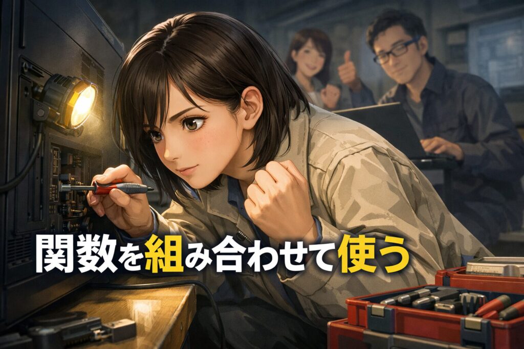 今回の「関数を組み合わせて使う」では、関数の中から関数を呼び出す流れに注目しながら、処理を部品のように組み立てる考え方をていねいに見ていきます。
