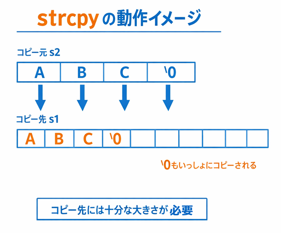 注意点コピー先サイズ不足に注意\0 が付かない場合に注意