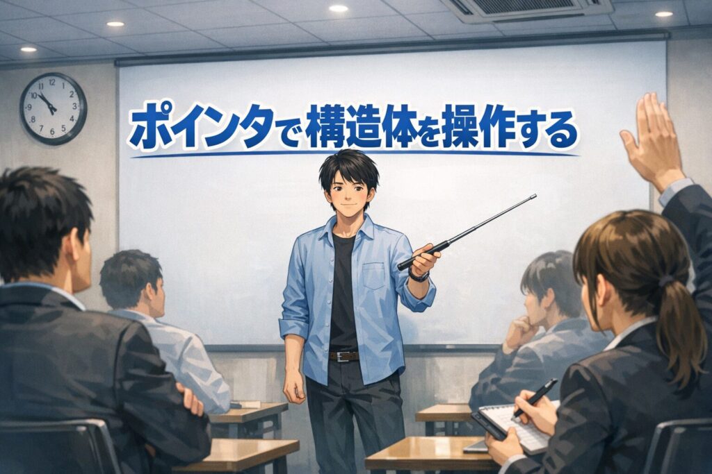 ここでは、まず構造体の変数をポインタで指す基本から始めて、アロー演算子の意味、(*p).member との違い、構造体配列や入れ子構造体への広がりまで、やさしく丁寧に見ていきましょう。