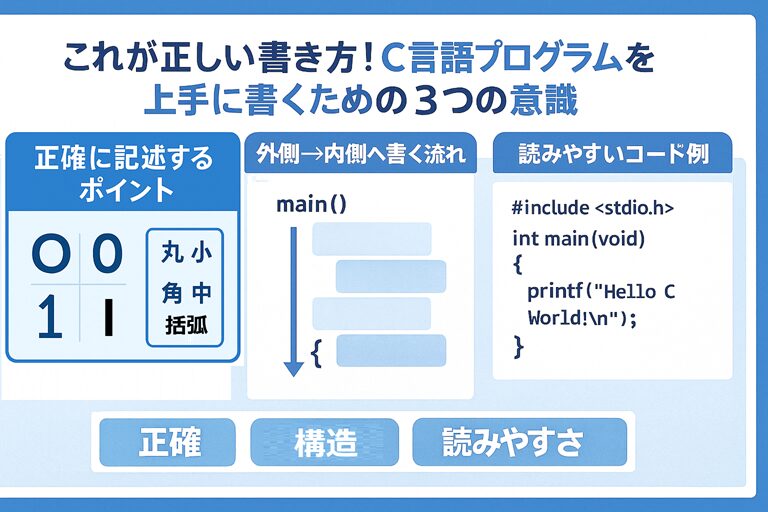 C言語のプログラムは、ただ動くだけではなく 「読みやすく・間違えにくく」書けることがとても大切✨ です。