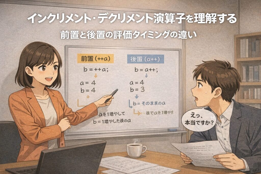 C言語入門|インクリメント・デクリメント演算子を理解する:前置と後置の評価タイミングの違い