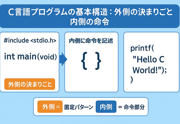 C言語入門|C言語プログラムの基本構造:外側の決まりごとと内側の命令