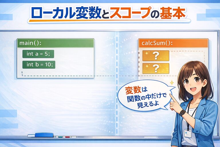 | 宣言された場所 | 変数が使える範囲を決める。 |