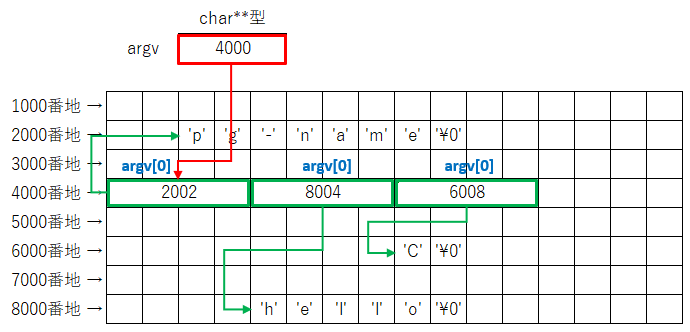実は argv は「二重ポインタ入門」にちょうどいい題材なんです。