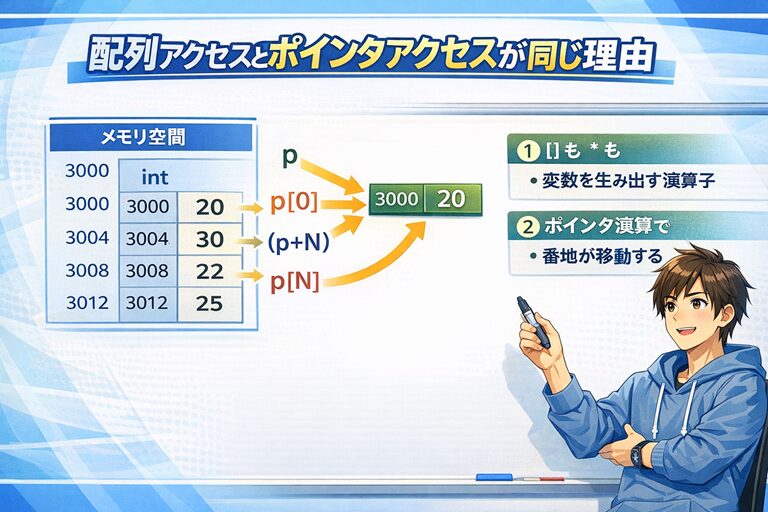 C言語入門|配列アクセスとポインタアクセスが同じ理由