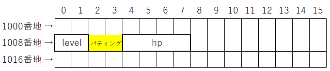 }構造体のメモリ配置とパディング