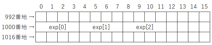 - exp[3] は int が3個 → 合計12バイト