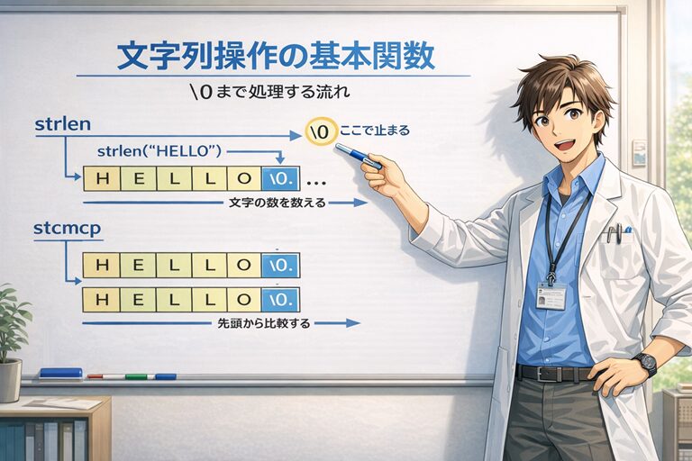 C言語の標準関数の中には、名前に str が付くものがたくさん登場します。