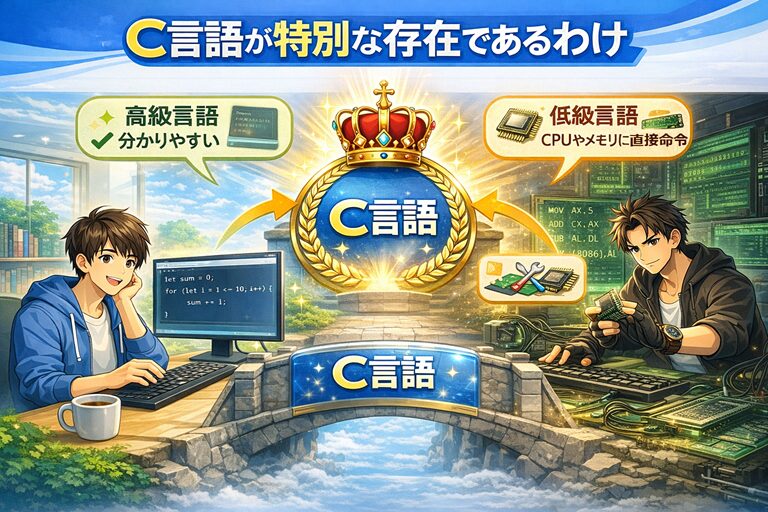 これまで皆さんが学んできたC言語は、間違いなく高級言語の顔でした。