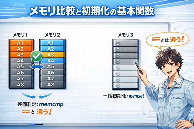 指定したバイト数分のメモリ内容を、そっくりそのまま比較する